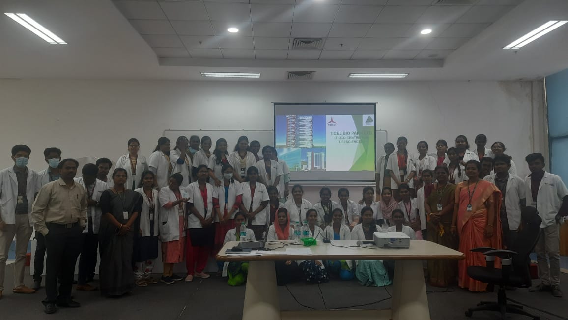 We 43 students from final year BSMS WITH 3 FACULTIES VISITED TICEL Biopark , Taramani campus on 20.9.22. Thanks to our management to arrange such a good opportunity to visit an advanced , well equipped campus for the progress of R&D. We are grateful to TICEL foe their kind guidance and support.
