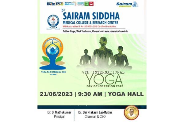 9th International Yoga Day was celebrated today. Department of udalkoougal, Sri Sairam Siddha Medical College and Research Center conducted an awareness program on Yoga Practice. Students from Iprofession 2022 batch participated and demonstrated many yoga poses, and explained the musculoskeletal role in each pose. They explained the health benefits of various yoga practices .Kindly post these photos also with this.