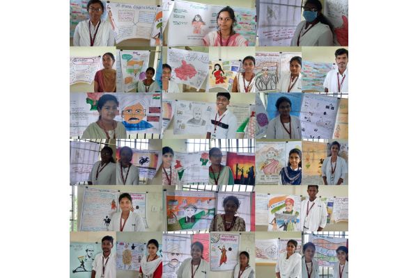 As a part of “Azadi Ka Amrit Mahotsav,” our students participated in the zonal level poster contest with the theme Freedom fighter life history on 08.08.2022 at the Tamil Nadu Dr. M.G.R. Medical University, Guindy, Chennai – 32. our college student J. Selshia Anjelin won the 3 rd prize. The prize was awarded by the Vice Chancellor of the Tamil Nadu Dr. M.G.R. Medical University on