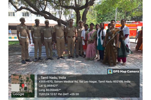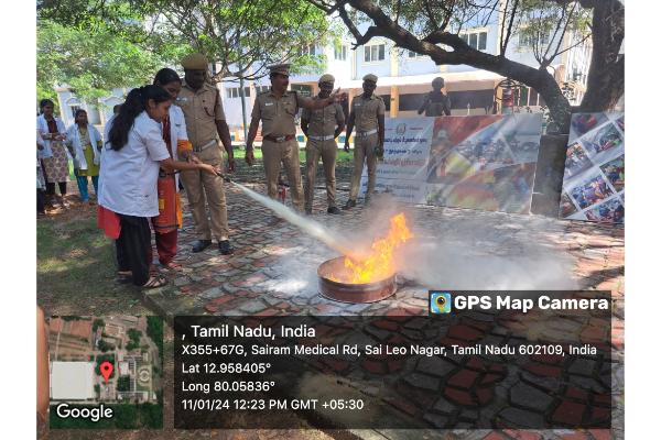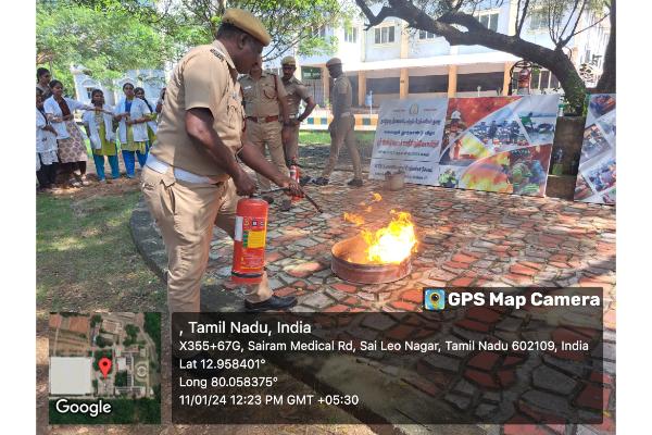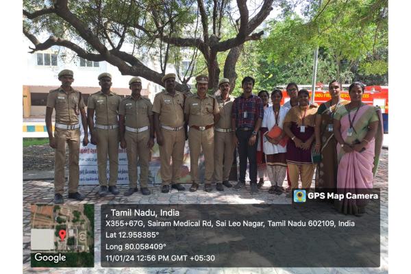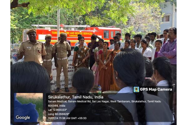 Disaster management club we conducted a fire and rescue training program in our college campus on 11.1.24 from 11am to 1pm.Mr.Amal Raj Mr.Naresh Kumar & team, Fire and rescue department conducted the awareness program South zone, Tambaram,