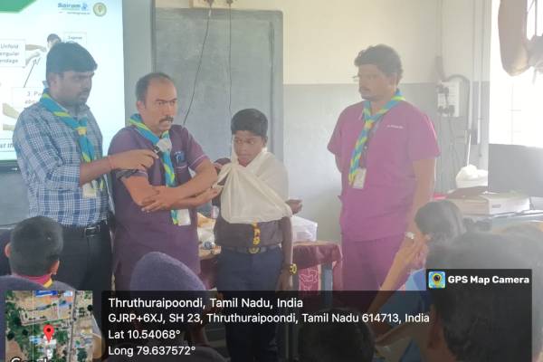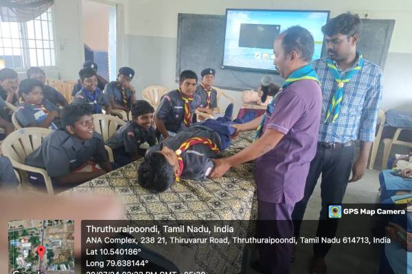 First aid Training given for Scouts and Guide Students of Sairam matriculation school ,Thiruvaarur and Thiruthuraipoondi