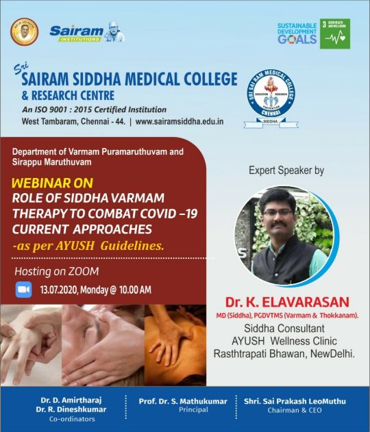 Webinar On Role of Siddha Varmam Therapy To Combat Covid – 19 Current Approaches