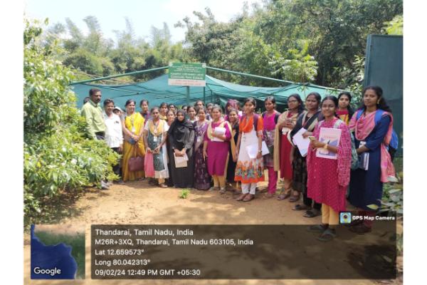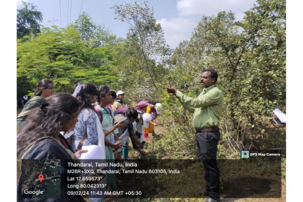 The department of Gunapadam – Maruthuvathavaraviyal & Marunthiyal organized one day field trip on “Traditional knowledge of medicinal plants from Ethnic Communities in Irular Tribes in Thandarai Village, Chengalpattu Forest Division on 09.02.2024. Forty-nine students and three faculties visited Irula Tribal Welfare Association Medicinal Plants Garden and Medicinal plant products processing Units. The Second Profession BSMS students interacted with Tribal Head Mr. K.Sigamani and gained ethnobotanical information. In this field visit students documented a total of 125 different medicinal plants, their vernacular names, and their uses as crude drugs in various diseases. The medicinal plant garden visit was a very excellent opportunity to observe the different medicinal plant species which are generally not observed. The faculty members also explained the importance of herbal gardens in preserving traditional knowledge related to medicinal plants and promoting sustainable practices in healthcare.