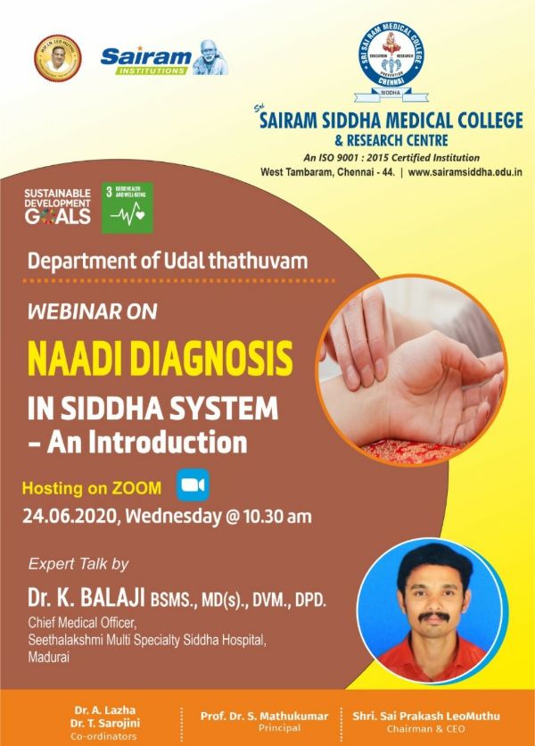Webinar On Naadi Diagnosis In Siddha System – An Introduction